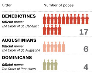 Washington Post source: http://www.washingtonpost.com/local/popes-from-religious-orders/2013/03/16/7310fd24-8ea6-11e2-b63f-f53fb9f2fcb4_graphic.html