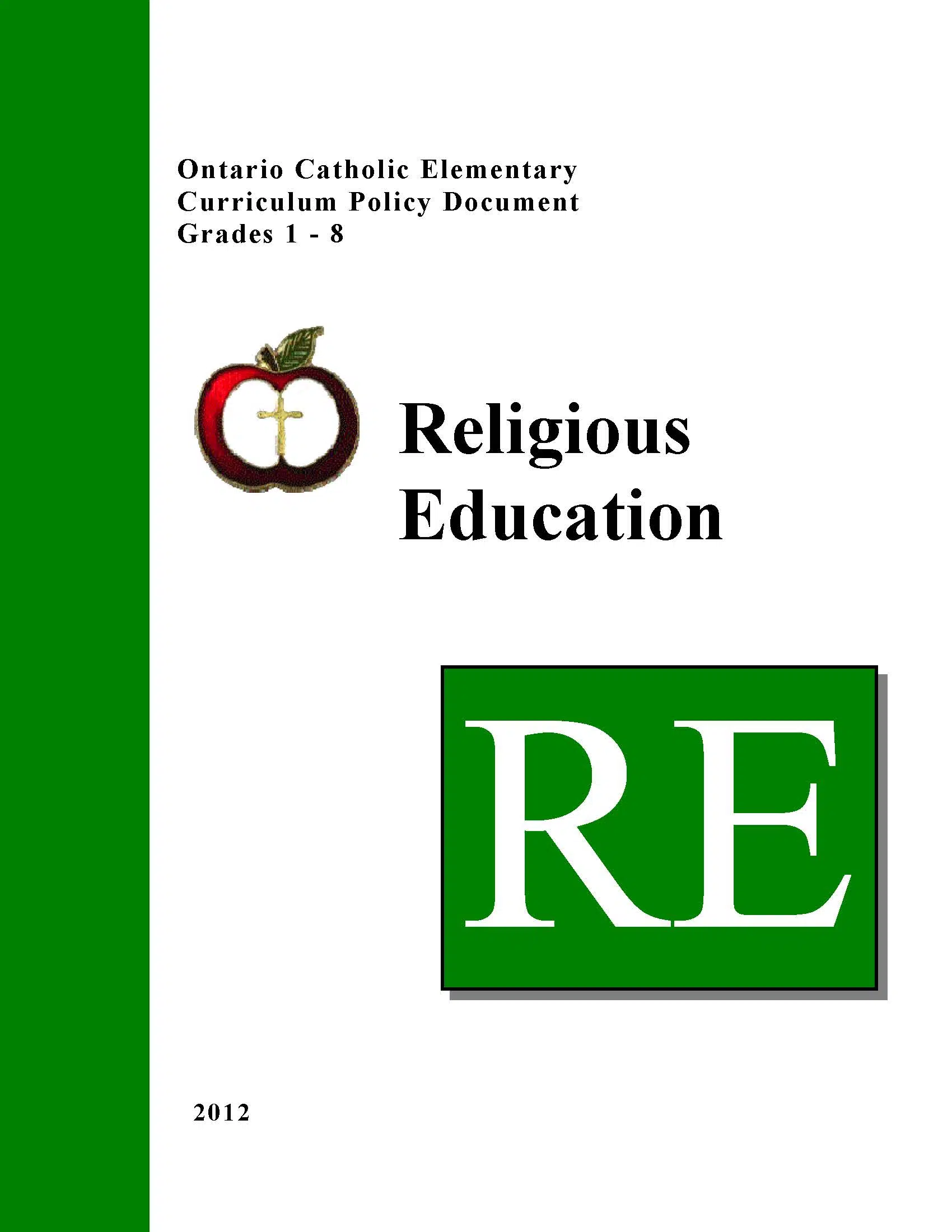 1 The Elementary Religious Education Curriculum Policy Document was released in the fall of 2012. It is available from the Institute for Catholic Education website. Institute for Catholic Education – Ontario Catholic Elementary Religious Education Policy Document Grades 1-8